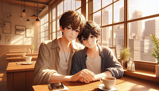 恋人になった二人はカフェで初デート。陽翔が「涼とこうやってるの、夢みたい」と言うと、涼は「夢なら、醒めなきゃいい」と笑う。カウンターで涼が陽翔の指を絡め、「可愛いな、陽翔」と囁く。陽翔の頬が赤くなり、二人は街を歩きながら恋人としての時間を楽しむ。